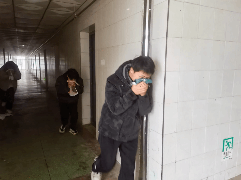 上午11时,随着消防警报声骤然响起,拉开了消防演练的序幕。学生迅速反应,在指导老师引导下,用湿毛巾捂住口鼻,在浓烟中按照消防指示灯确定疏散路线,低姿弯腰,快速有序地撤离至安全区域。整个过程紧张有序,同学们有条不紊、技能熟练,在规定时间内完成了全员疏散,无一人遗漏。撤离至安全区域后,指导老师在现场演示灭火器、消火栓的正确使用方法,讲解火灾预防、逃生要点等实用知识。