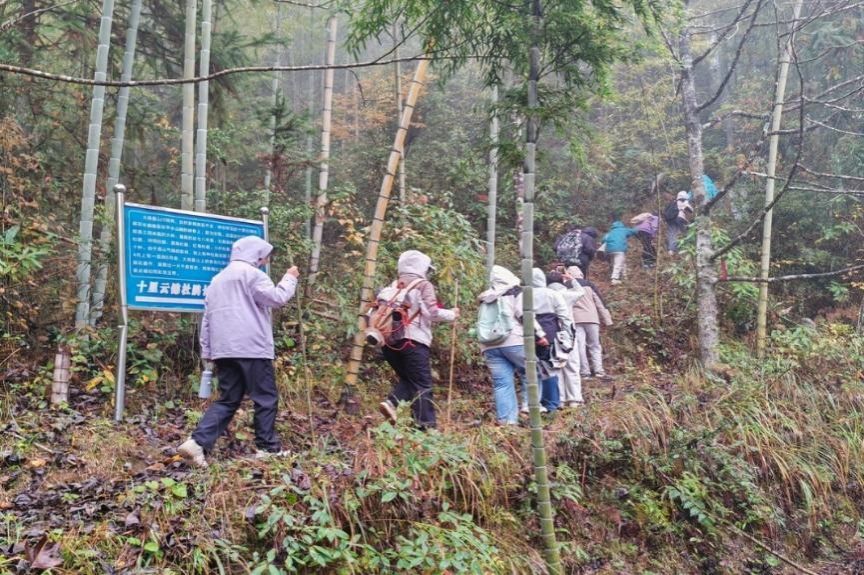 次日暴雨突至,师生按照预案及时转为室内安全教育,通过观看《荒野求生》纪录片、分析典型案例分析案例等方式,强化学生的风险意识和应急处置能力。第三天细雨依旧,师生坚持按计划沿红军走过的"十里云锦杜鹃长廊"开展生态调查,在海拔上升近百米的湿滑山路上徒步前行,不仅圆满完成了群落结构调查任务,更在红色足迹中深切感受到不畏艰险、砥砺前行的精神力量,实现了专业技能与思想境界的双重提升。
