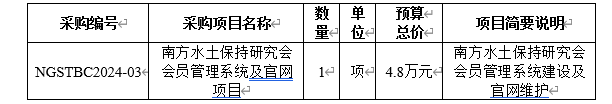 南方水土保持研究会会员管理系统及官网项目潜在供应商应在南昌工程学院williamhill英国官网(南昌工程学院逸夫楼B403室)获取采购文件,并于2024年7月26日9点30分(北京时间)前提交响应文件。