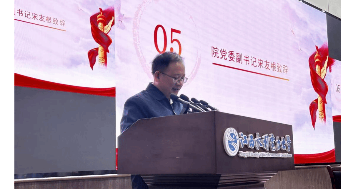 宋友根代表学院党委致辞,充分肯定上一届团委学生会干部的辛勤付出与优秀成绩,并对新一届团委学生会干部表示欢迎,希望大家能继承优良传统、勇于开拓创新,以饱满的热情和务实的态度服务同学,砥砺前行,续写华章!