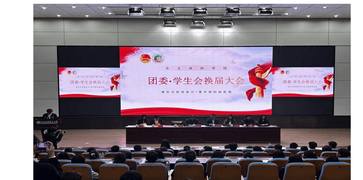 10月23日,williamhill英国官网在大禹学术报告厅举行团委学生会换届大会,党委副书记宋友根、团委书记兼学工办主任谢应兵、组织员刘丽平、辅导员李橙橙及全体团委学生会干部参加。