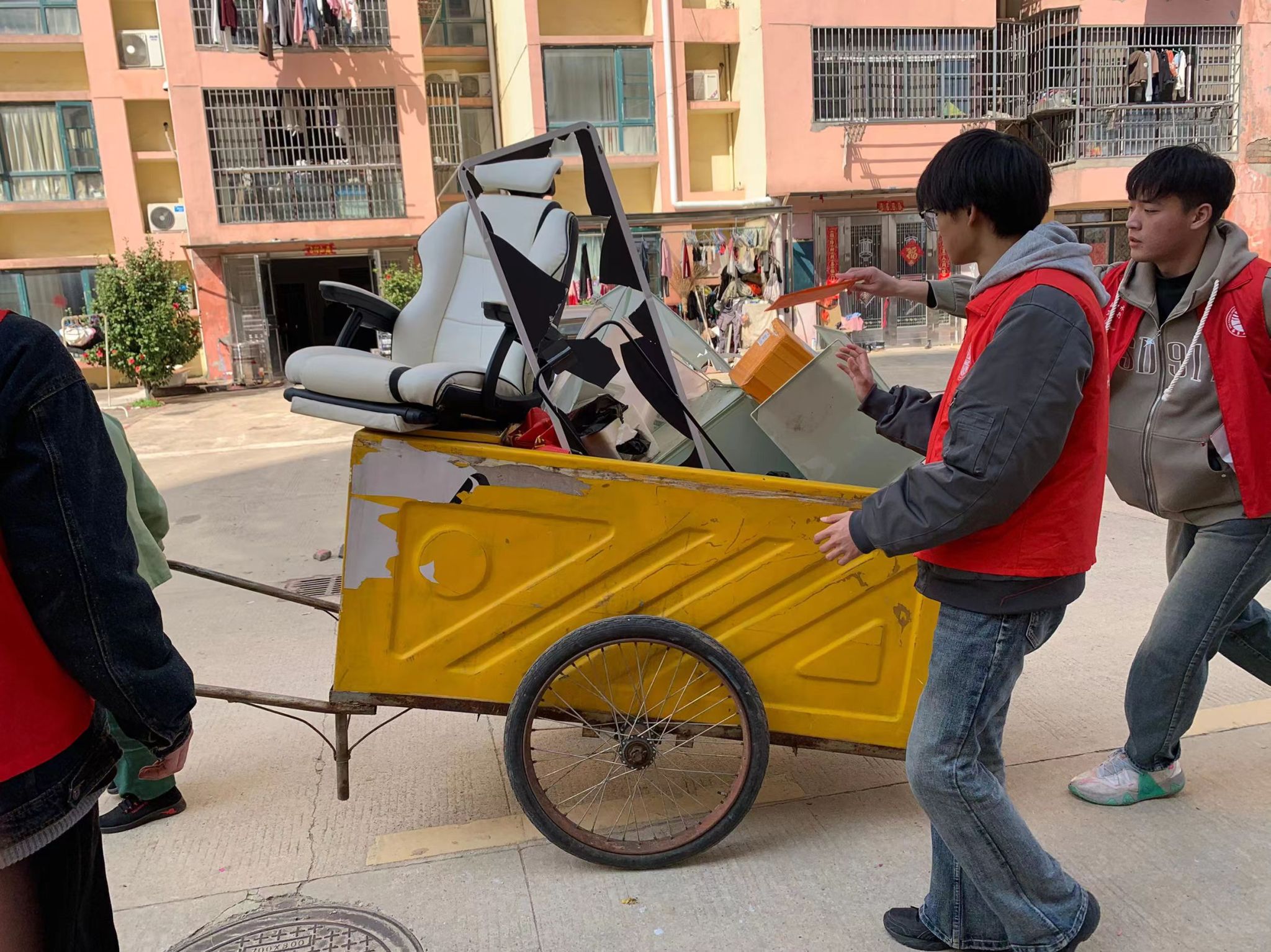 在志愿服务活动中,身穿红色马甲的志愿者们积极帮助小区居民搬运东西,主动捡起了草坪上的塑料废弃物、烟头和废纸屑等,为小区的环境卫生贡献了自己的力量。通过实际行动,志愿者们引导广大群众积极参与到生态文明建设中来。此外,志愿者们还给小区居民还开展了火灾防控、防范网络诈骗等安全宣传科普活动。